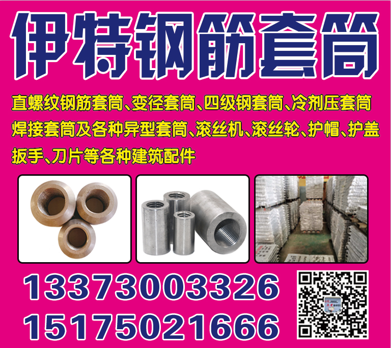 专用生产:直螺纹钢筋套筒、变径套筒、四级钢套筒